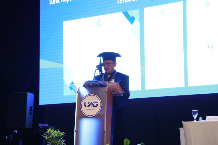Terakhir, kepada Pimpinan dan jajaran Universitas Ary Ginanjar, mari kita jaga komitmen ini untuk terus menjadikan perguruan tinggi sebagai mitra bagi mahasiswa dalam mengembangkan potensi dan bakat yang mereka miliki. Dengan demikian, diharapkan mahasiswa dapat menjadi individu yang unggul, berintegritas, dan sukses di masa depan. Mari kita jadikan integritas sebagai landasan utama dalam meraih kesuksesan. Semoga dengan bekal ilmu dan integritas yang kuat, para wisudawan dan wisudawati dapat menjadi agen perubahan yang positif dalam membangun masa depan Indonesia yang lebih baik," tutupnya. Sebelumnya, Rektor Universitas Ary Ginanjar (UAG), Sujoko Winanto, S.T., MBA menyampaikan laporan akademik di hadapan forum rapat senat terbuka. "Lulusan Tahun Akademik 2023-2024 sebanyak 101 Mahasiswa, dari Program Studi Manajemen berjumlah 64 mahasiswa, Sistem Informasi 20 mahasiswa dan Ilmu Komputer sebanyak 14 mahasiswa. Serta lulusan program Second Generation 1 tahun 3 Mahasiswa," ungkapnya.